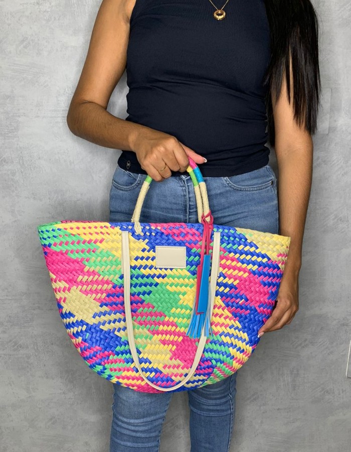 Bolsa de Palha com Trama Colorida -