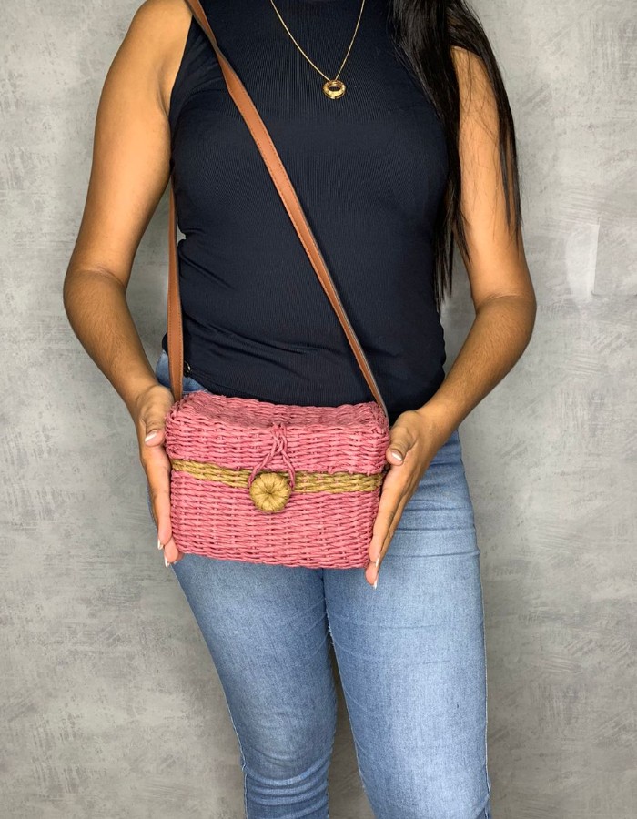 Bolsa Quadrada com Palha Sintética -